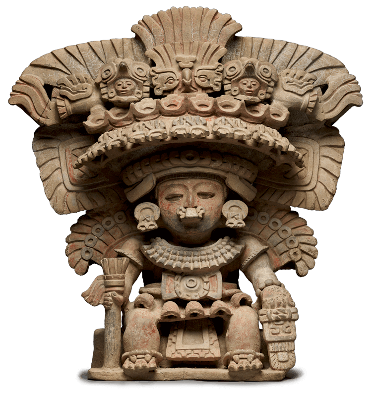 Figural Urn, Zapotec, 500–600 C.E.  Clay and pigment, 25 x 25 x 12 1/2 inches (63.5 x 63.5 x 31.75 cm). The Nelson-Atkins Museum of Art, Purchase: William Rockhill Nelson Trust, 61-16.